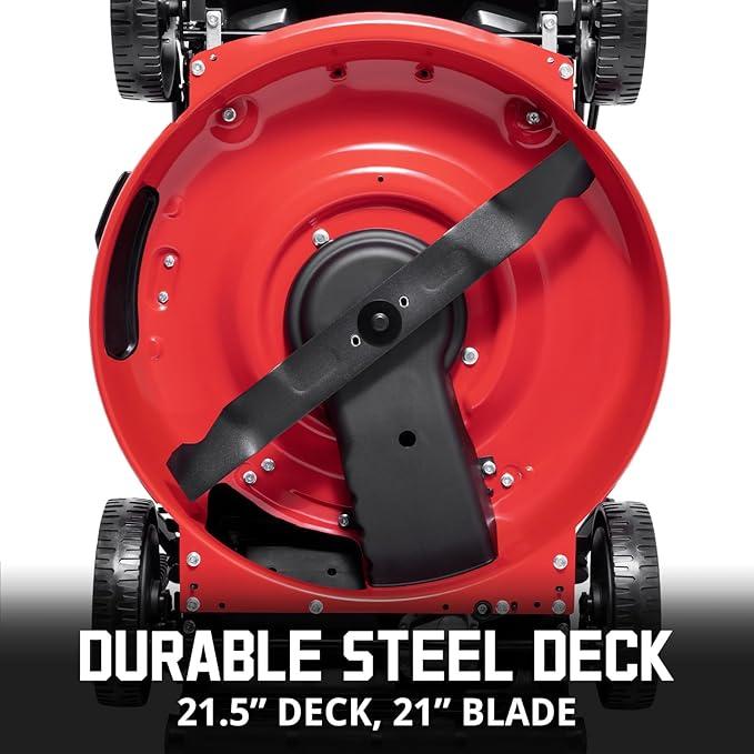 21" Cutting Blade: The heavy-duty blade deliversbetter cutting effect, allowing you to mow more in lesstime.